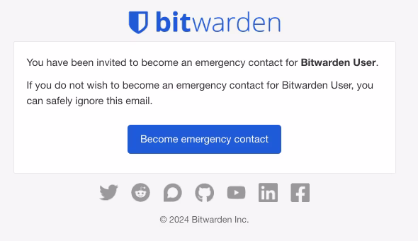 作为想要接收他人密码库的紧急访问权限的人，请接受发出的电子邮件邀请：