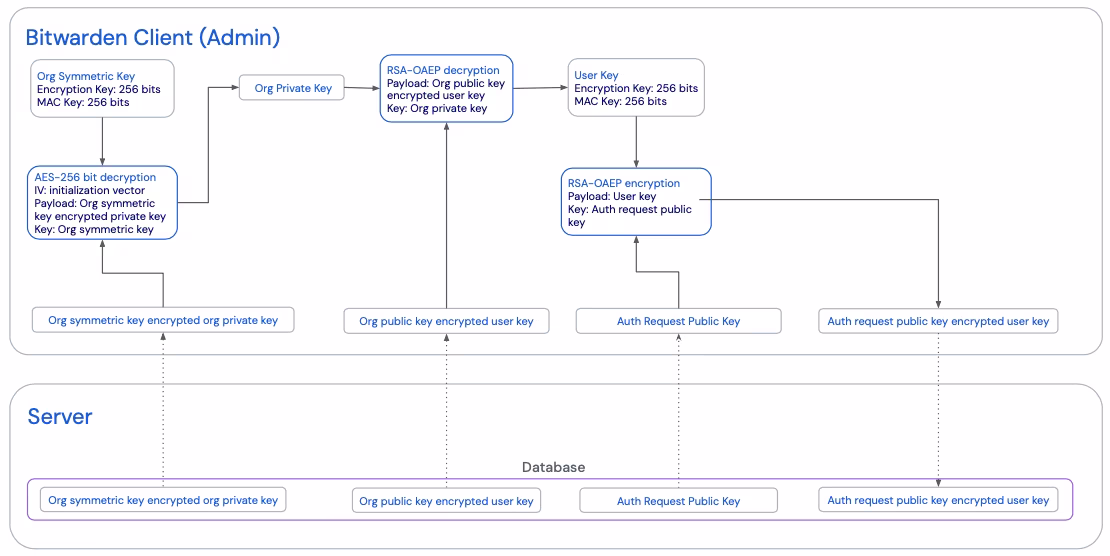 1. 按照安全白皮书中「[身份验证和解密](https://help.ppgg.in/security/bitwarden-security-whitepaper#authentication-and-decryption)」部分的说明，获取并解密用户的账户加密密钥。